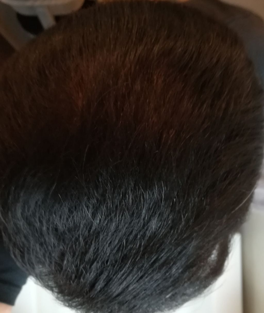 光が当たっていないのと育毛トニックのボリュームを増す効果の為だ。